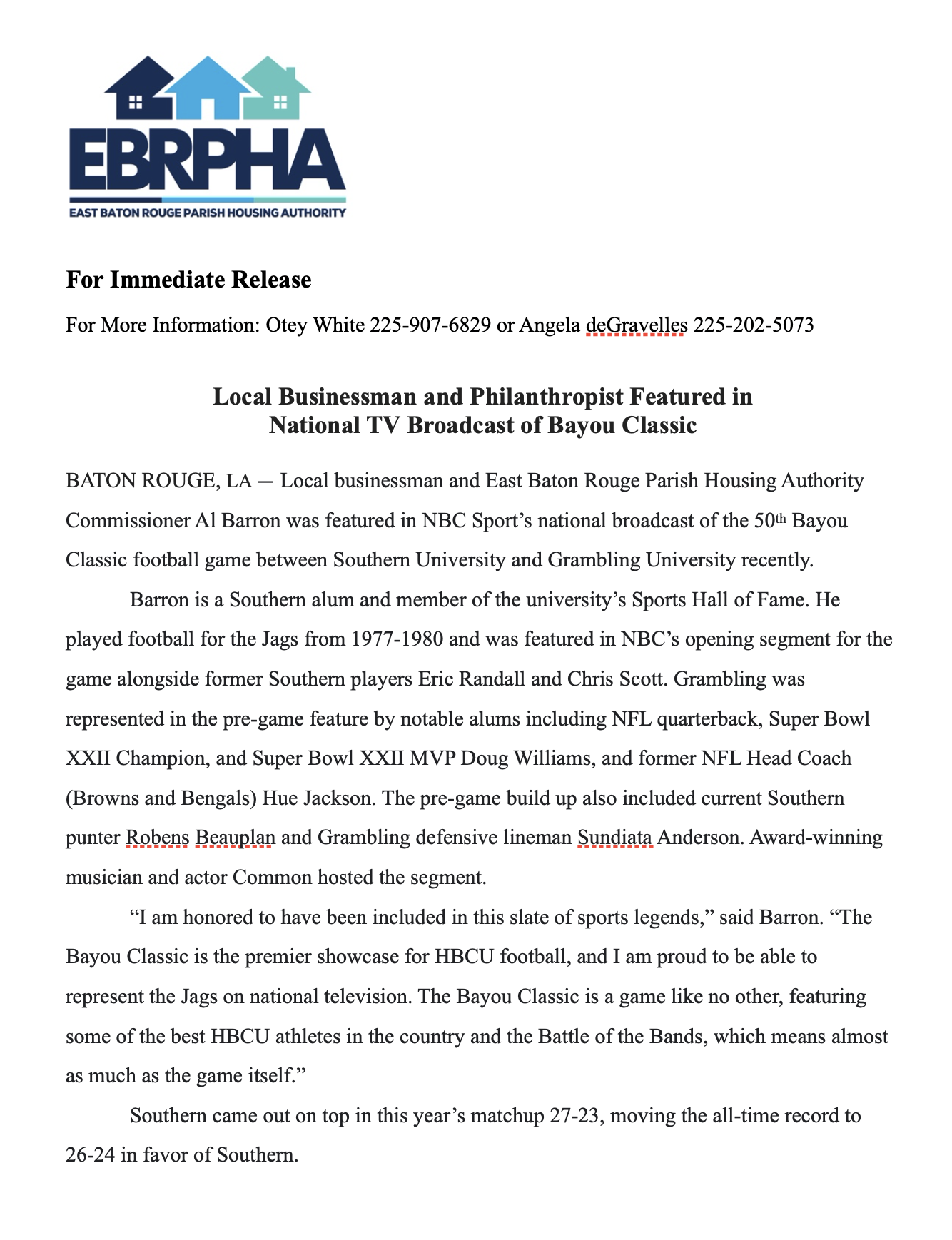 EBRPHA ACQUIRES FORMER EARL K. LONG SITE FOR