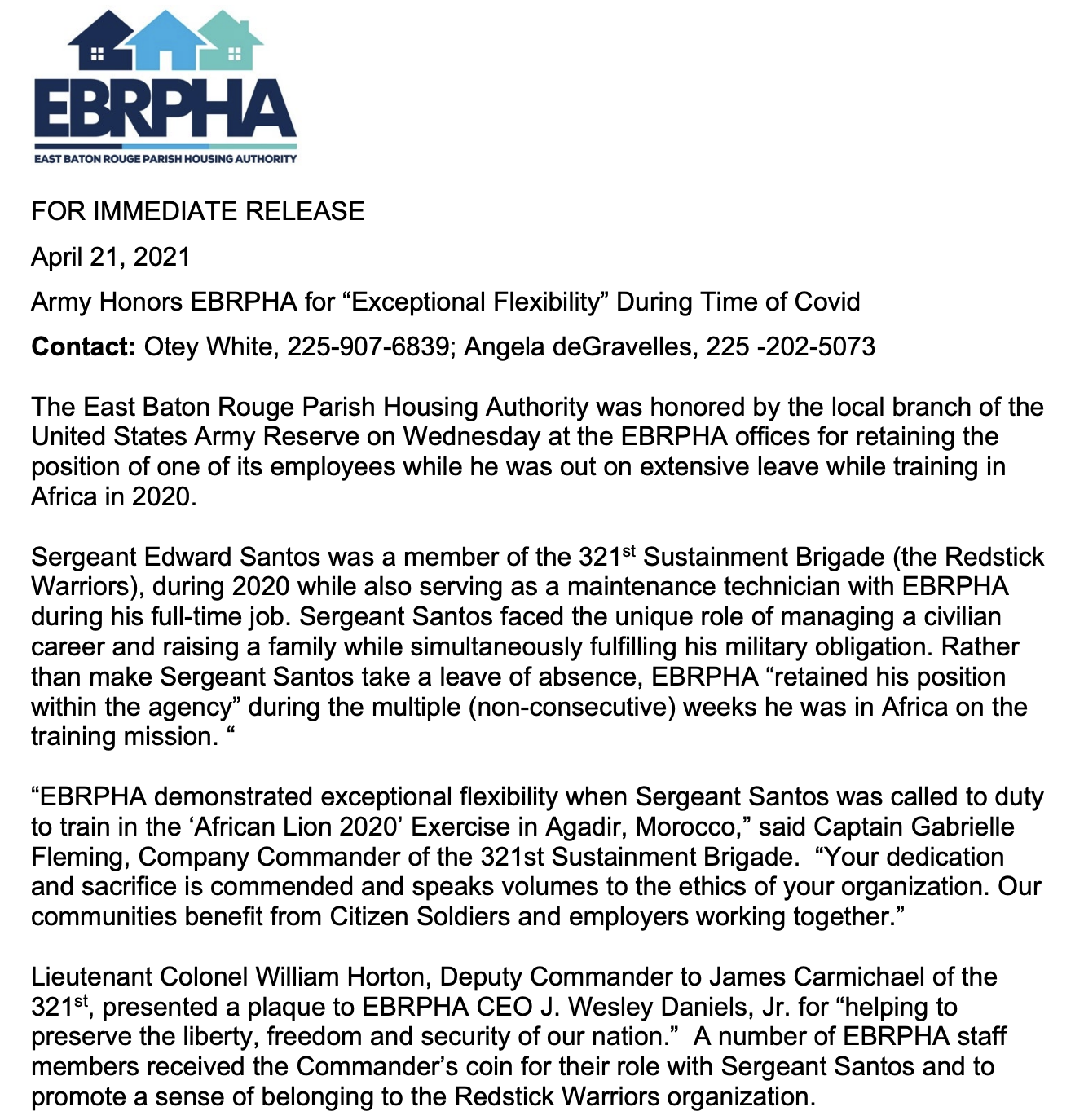 Army Honors EBRPHA for “Exceptional Flexibility”
