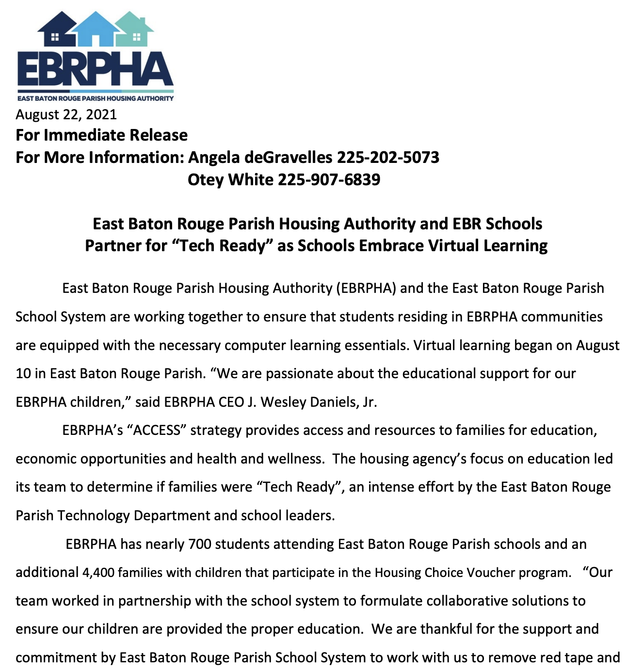 EBRPHA to Distribute Virtual Learning ‘Tech Ready” Tools